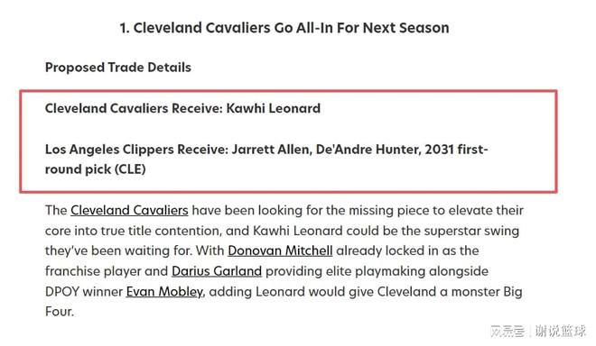FW支招快船交易伦纳德,可用他换骑士两大将+首轮?